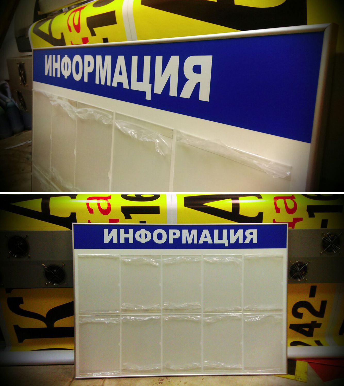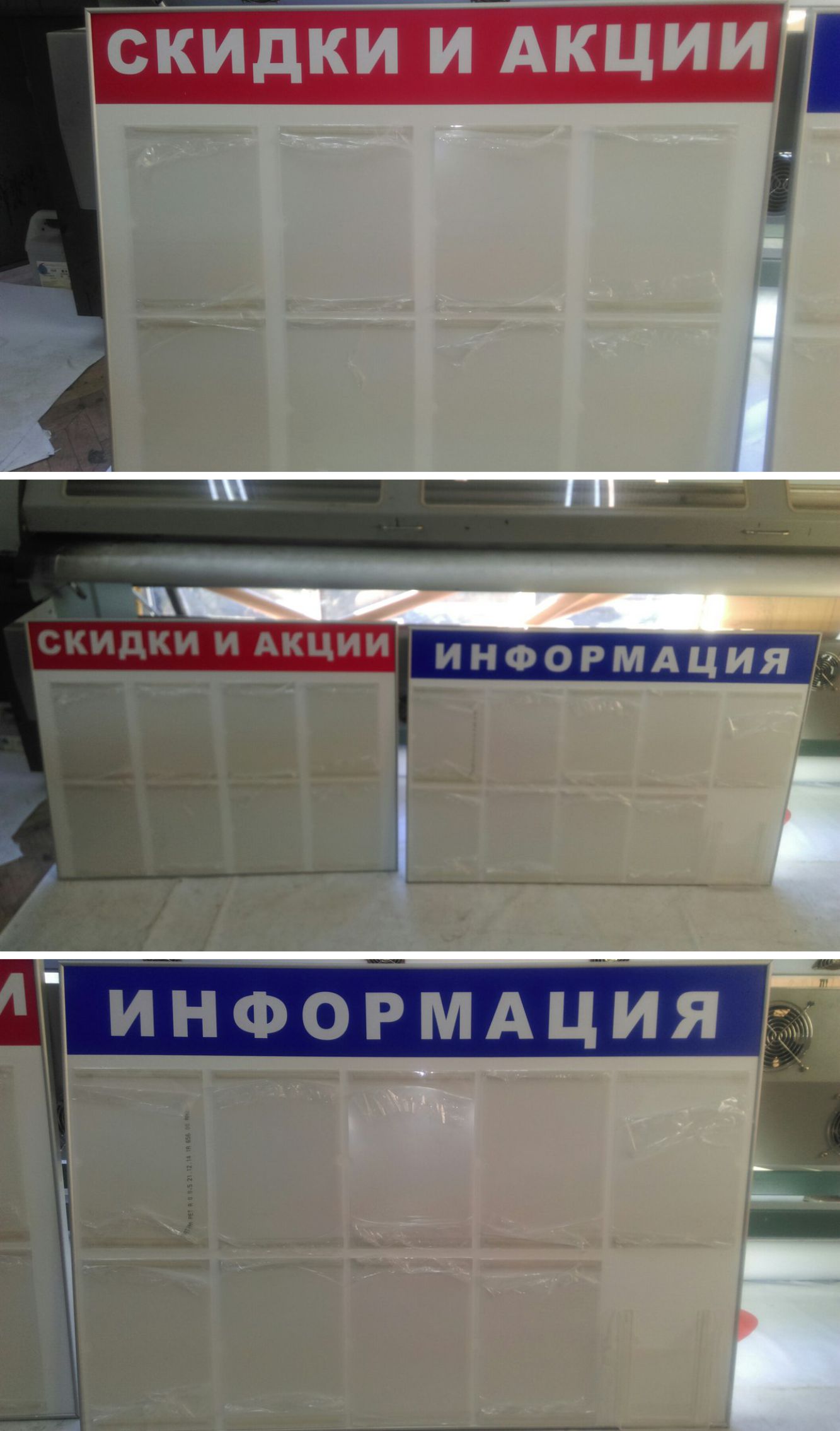 У нас вы имеете возможность купить или заказать информационный стенд любого типа. Стенды со статичной информацией изготавливаются способом нанесения самоклеящейся пленки. Для того чтобы менять информационное наполнение, мы делаем стенды со специальными карманами.